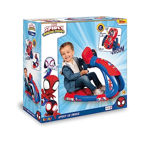 Smoby - Spidey V8 Driver, 7600370218, 3 anni, simulatore di guida, 3 posizioni, schermo retroilluminato, funzione boost, retromarcia, made in France