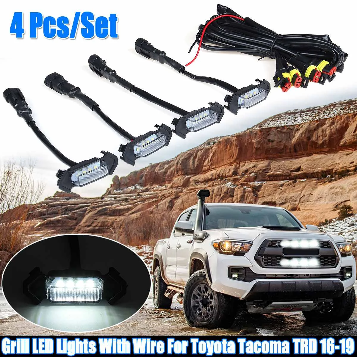 4PC Set Smoked Lens Car LED Grille Amber White Lights Kit Front Grill Lighting Kit For Toyota Tacoma TRD 2016-2019