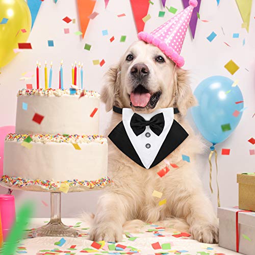 Smoking per Cani da Bandana Formale Nuziale Collare per Cani con Farfallino e Cravatta Collo Colletto Nero Regolabile Papillon per Cani Formale Fazzoletto da Collo Regolabile (Nero, L)