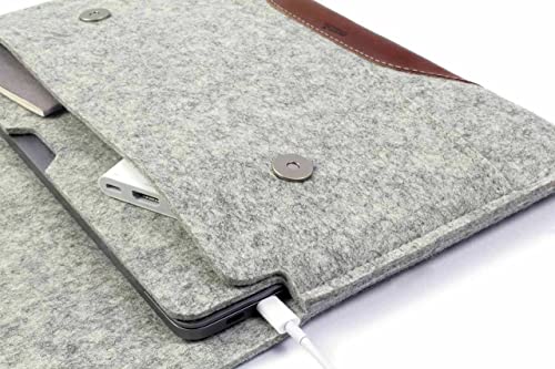 Pack & Smooch Custodia per MacBook Pro 14 (2021-2023), 100% feltro di lana e pelle conciata al vegetale, realizzata a mano in Germania, grigio/marrone chiaro