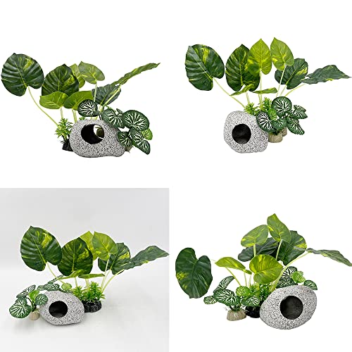 Smoothedo-Pets Piante per acquario, decorazioni per acquario, 15,2 cm, in plastica, pianta artificiale per pesci rossi, paesaggio acquatico Betta Fish Hides/Rest (foglie/grotta di pietra)