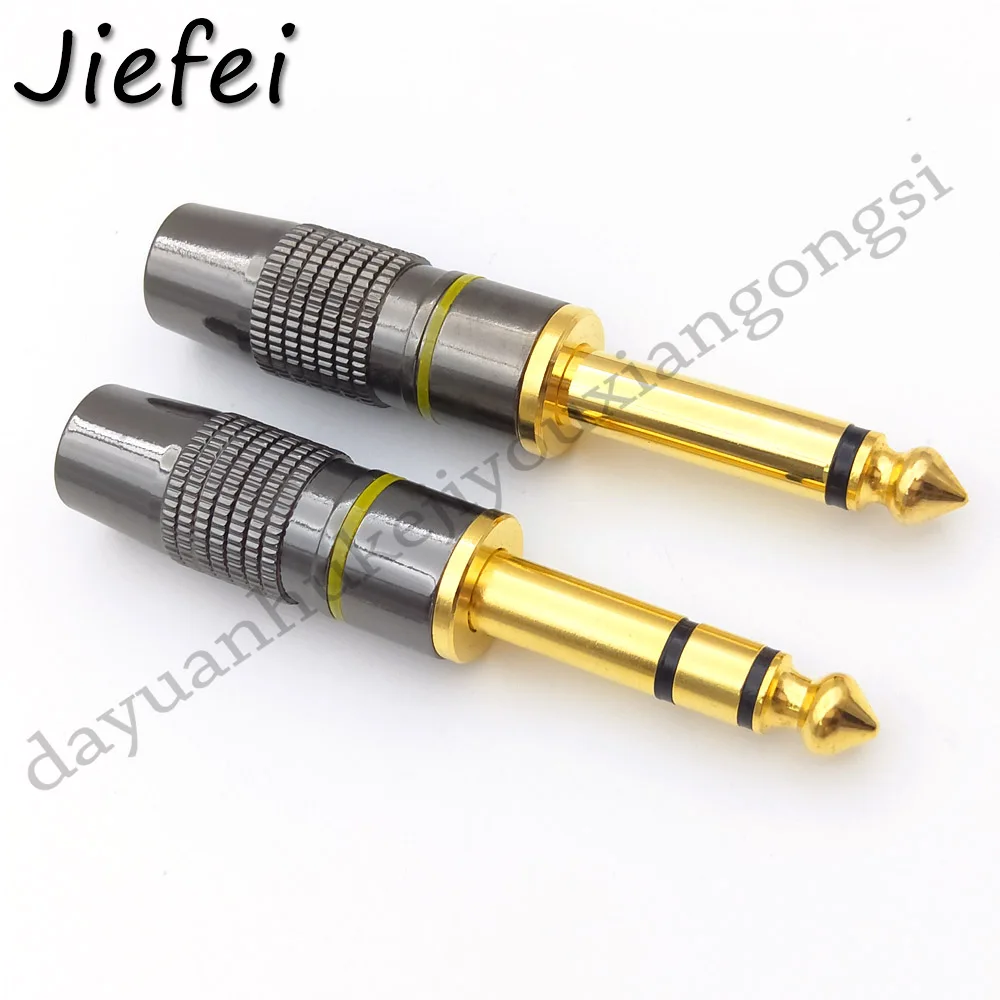 1Pcs Jack 6.3 Smoothly Gold plating 6.35mm 2 Pole Mono / 3 Pole Stereo Plug Assembly Wire Connector Gunmetal Audio Plug