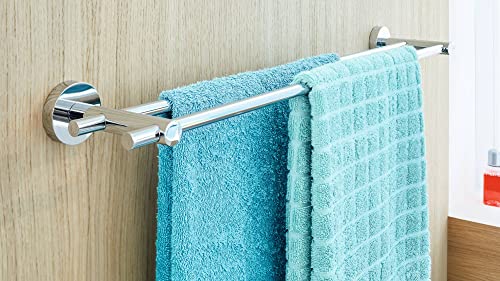 Tesa Smooz Barra Porta Asciugamani Doppia - Portasciugamani in Metallo Cromato Inossidabile - Impermeabile - Colla Rimovibile Inclusa