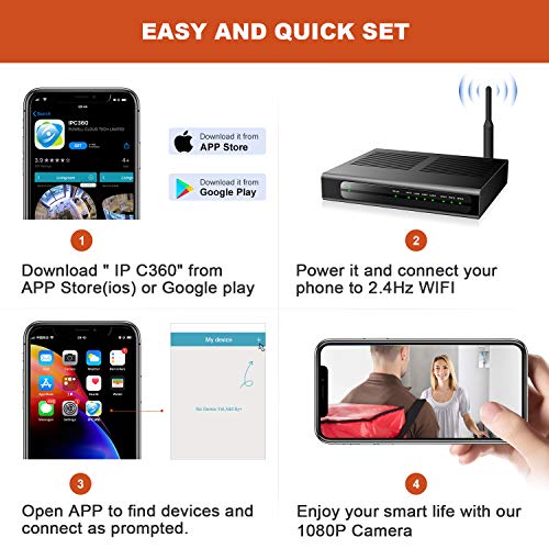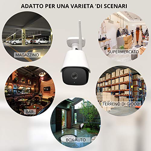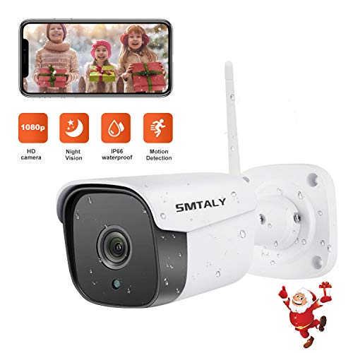 SMTALY C2 1080P WIFI Telecamera IP Esterno, Impermeabile IP66 20M Visione Notturna,Rilevamento del Movimento,Audio Bidirezionale, compatibile con iOS, Android, PC. Supporta micro SD card fino a 8-128 G