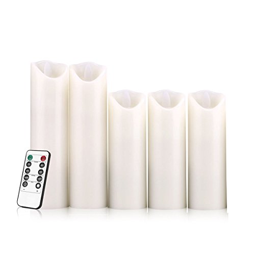 Smtyle fiamma, funzionamento a batteria-Candela a colonna decorata in cera, con Timer(Confezione da 5)
