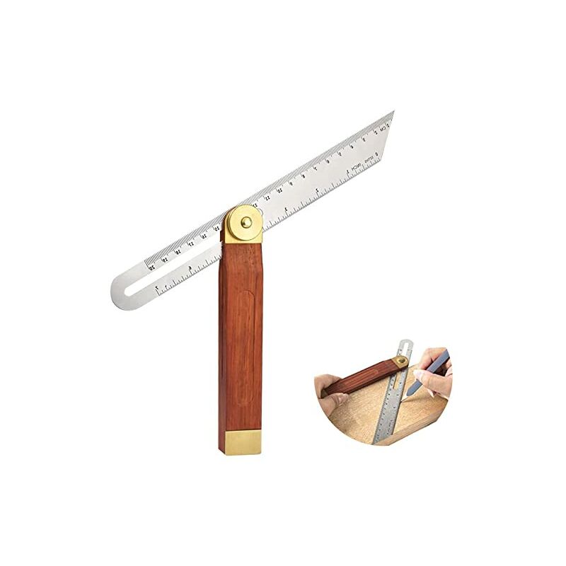 Materiale Premium - Il righello quadrato in legno è realizzato in resistente acciaio inossidabile, resistente alla ruggine, alle cadute e ai danni, e viene fornito con un tradizionale manico in legno duro lucido che è comodo da impugnare e non si graffia. non danneggerà facilmente le mani . 【Maniglia rimovibile】 La maniglia ha un dado regolabile, che è facile da rimuovere e può essere regolato da 0 a 360 gradi in qualsiasi angolazione, stringere il dado per misurare o disegnare. inoltre, entrambe le estremità del manico in legno sono intarsiate con ottone, che sembra bello ed elegante. 【Scala a doppia faccia】 I nostri cursori scorrevoli con smusso a T sono disponibili in due unità di misura: metrico e imperiale (0-20 cm, 0-8 pollici). il righello ha una scala a doppia faccia, che è incisa con precisione, facile da leggere, non facile da sbiadire e più comoda da usare. 【Facile da trasportare】Dimensioni: 318 x 26 mm a doppia faccia righello in pollici metrici con smusso scorrevole da