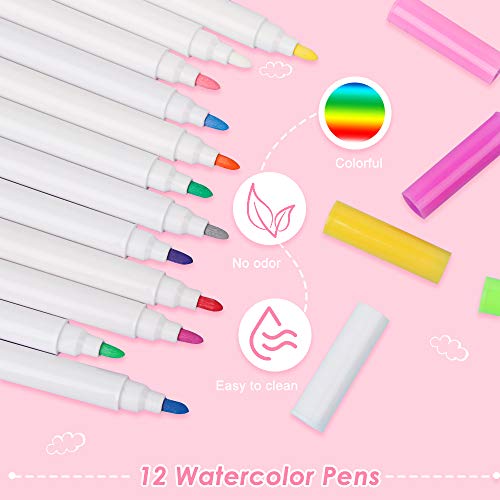 【RIUTILIZZABILE】 Il libro da disegno è dotato di 12 penne ad acquerello speciali prive di polvere, colorate e che possono essere facilmente pulite con un panno bagnato senza lasciare tracce. Coltiva la creatività e l'immaginazione di tuo figlio!