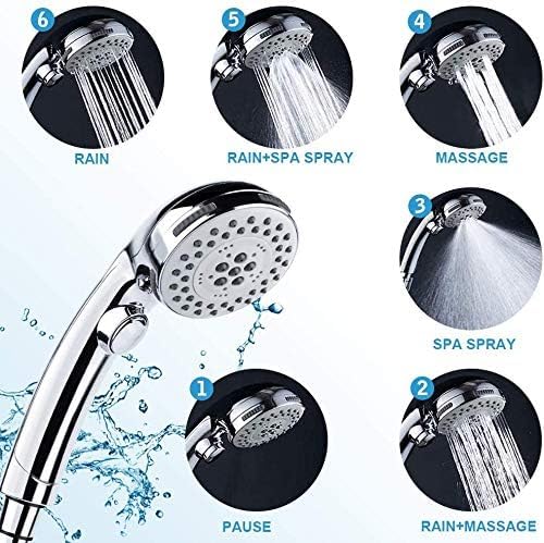 Smyidel Soffione doccia, soffione doccia portatile con tubo da 1.5M (senza staffa), 6 impostazioni di getto soffione doccia rimovibile ad alta pressione con interruttore ON/OFF