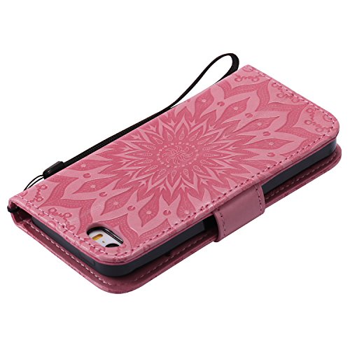 SMYTU Custodia iPhone 5s iPhone se,Cover iPhone Rosa Custodia in Pelle con Rilievo Supporto di Stand Built-in Card Slot Cover per iPhone5s/se/5 Custodia Pelle(Rosa)
