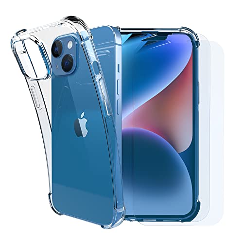 SMYTU Custodia per iPhone 14 Plus 6.7" + 2 Pezzi Vetro Temperato,Trasparente Anti-Giallo Case Cover Protettiva Antiurto Leggera e Sottile per iPhone 14 Plus 6.7" - Crystal Clear