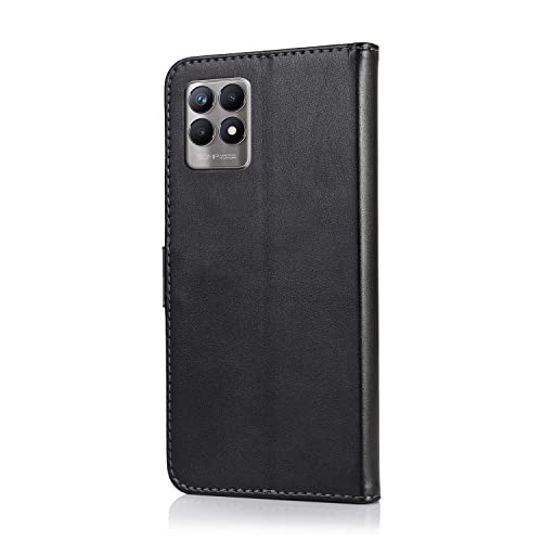 SMYTU Custodia per Realme 8i + Vetro Temperato,Cover a Libro Realme 8i,Custodia Flip in Pelle Magnetica Portafoglio Per Realme 8i (F-Nero)