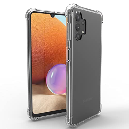 SMYTU Custodia per Samsung Galaxy A32 4G + 2 Pezzi Vetro Temperato,Trasparente Anti-Giallo Case Cover Protettiva Antiurto Leggera e Sottile per Samsung Galaxy A32 4G - Crystal Clear