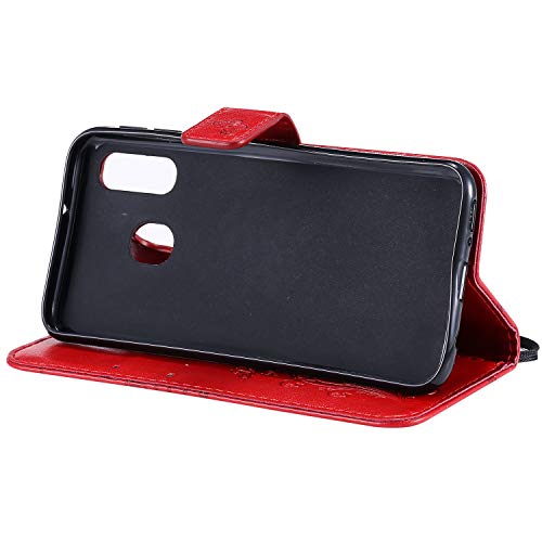 SMYTU Custodia Samsung Galaxy A40 Case, Rosso Flip Magnetica Premium Pu Custodia in Pelle con Rilievo Supporto di Stand Built-in Card Slot Cover (B-Rosso)
