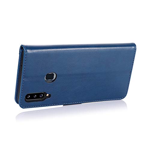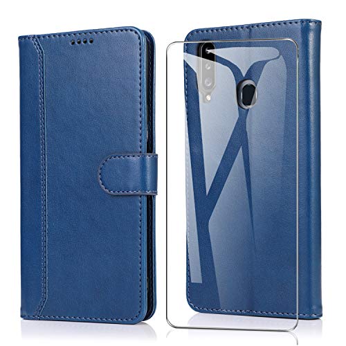 SMYTU Custodia per Samsung Galaxy A20s + Vetro Temperato,Cover a Libro Samsung Galaxy A20s,Custodia Flip in Pelle Magnetica Portafoglio Per Samsung Galaxy A20s (F-Blu)