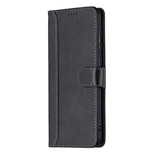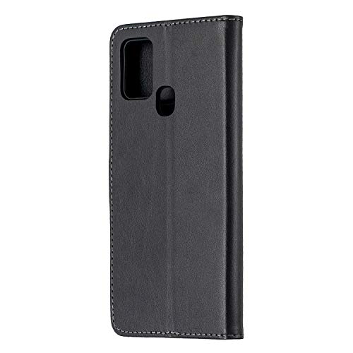SMYTU Custodia per Samsung Galaxy A21s + Vetro Temperato,Cover a Libro Samsung Galaxy A21s,Custodia Flip in Pelle Magnetica Portafoglio per Samsung Galaxy A21s (F-Nero)