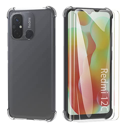 SMYTU Custodia per Xiaomi Redmi 12C / 11A + 2 Pezzi Vetro Temperato,Trasparente Anti-Giallo Case Cover Protettiva Antiurto Leggera e Sottile per Xiaomi Redmi 12C / 11A - Crystal Clear