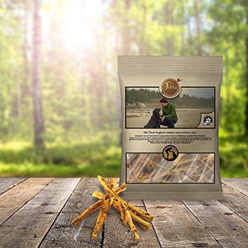 Sano cani Snack testa Pelle Bovina | Natura kausnack in cuoio capelluto | Tiera Spezial bovini di carne Sticks con BIOTINA & semi di lino