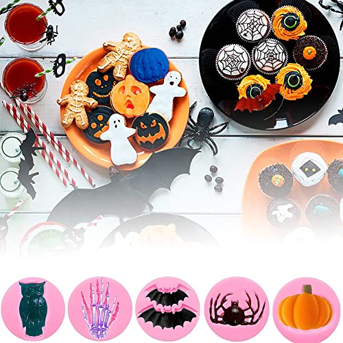 SNAGAROG 8 Pezzi Stampi in Silicone per Halloween Fondente Torta Stampi Halloween Stampo Silicone di Zucca Pipistrello Scheletro Ragno Gufo Fantasma Scopa della Strega Rami di Alberi Secchi