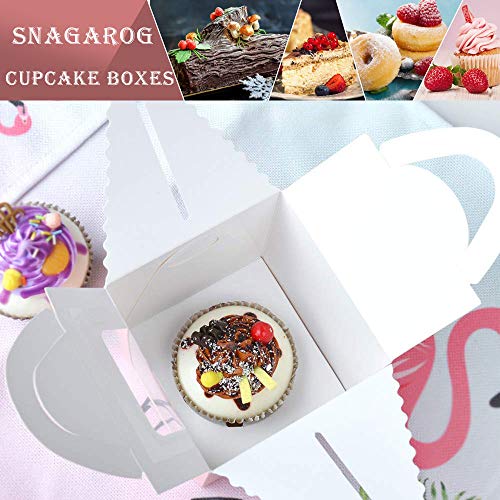 SNAGAROG 25 Pz Scatole per Cupcake Muffin con Finestra Trasparente Inserto e Maniglia Porta Cupcake Cartone Singole Scatole per Cupcake Scatoline per Cupcake per Regali Compleanno Matrimonio