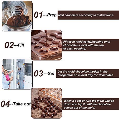 Progettato per la tua praticità: sostituisci lo stampo inutilizzabile, questo stampo per cioccolato in policarbonato è molto comodo da usare, facile da estrarre e non distruggerà la forma. È super amichevole per gli amanti della produzione di cioccolato, puoi usarlo con la tua famiglia e goderti la gioia del fai da te fatto a mano insieme.