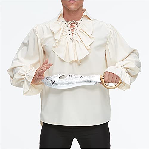 Snailify Camicia da pirata da uomo, con volant, stile rinascimentale, steampunk, vittoriano, gotico, medievale, costume da cosplay, Beige, Large/X-Large