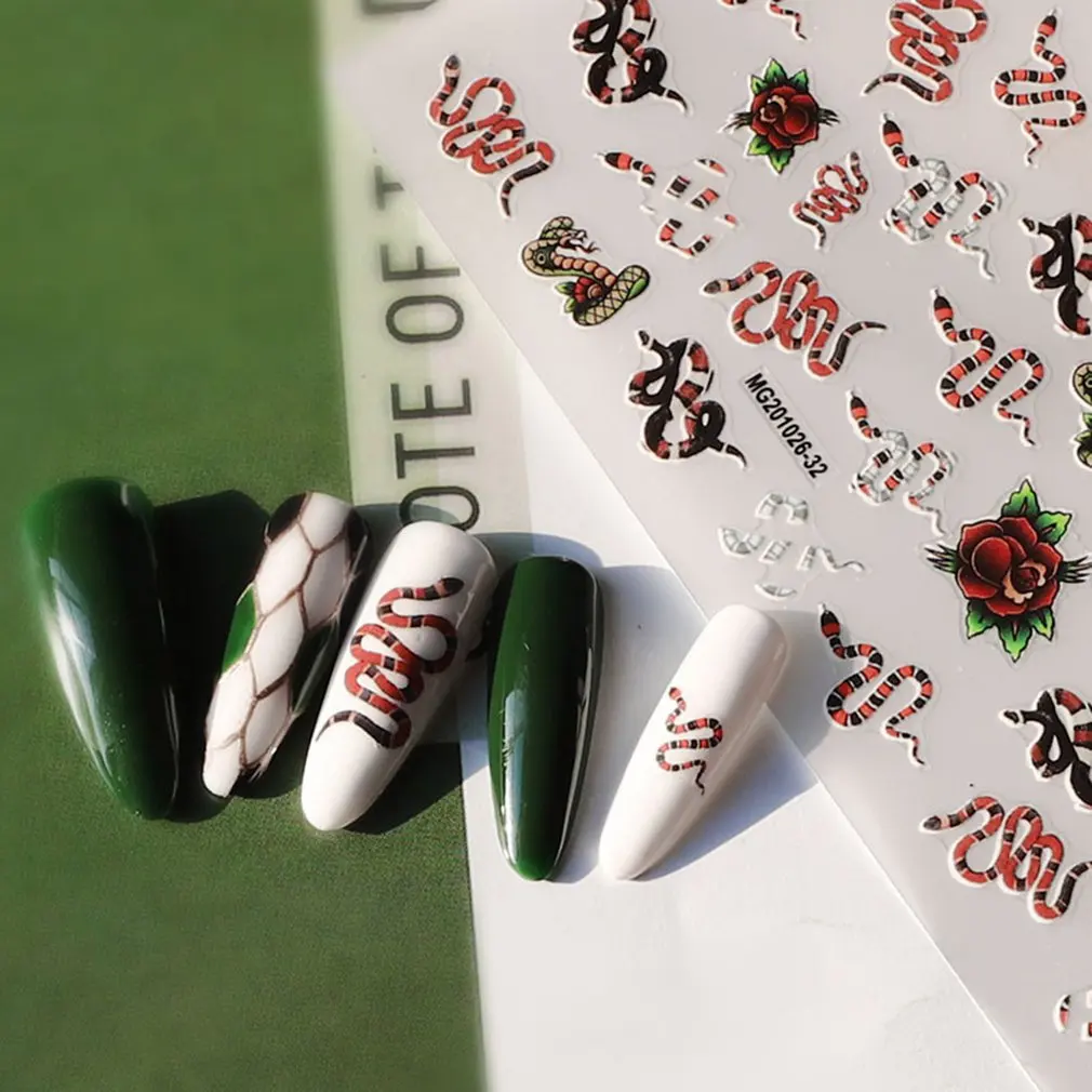 3D Dark Snake Series Seamless Nail Art Stickers Self-adhesive DIY Manicure Decal Decoration Salon Acrylic Tips Tool
