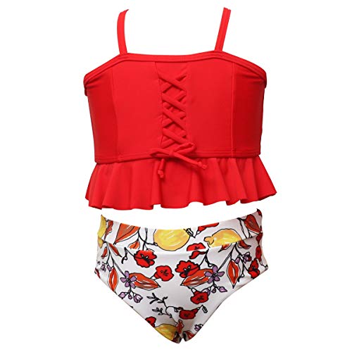 Snaked cat Costume da Bagno a Righe Bianco e Nero Mamma e Ragazza Costume da Bagno a Due Pezzi Davanti papà e Ragazzo Pantaloncini da Bagno (Rosso-A Ragazza, 164(10-12T))
