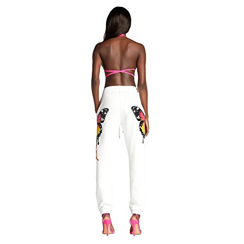 Snaked cat Tuta sportiva da donna, tuta da allenamento 2 pezzi Set top con cappuccio manica lunga stampa farfalla + abiti tuta (Bianco pantaloni, M)