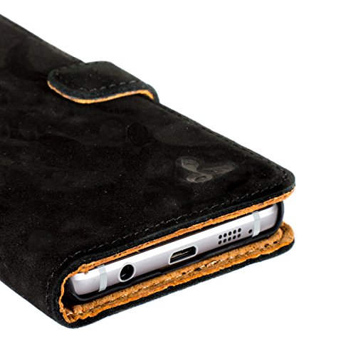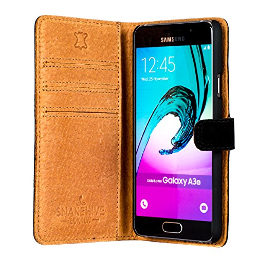 Snakehive Custodia Galaxy A3 (2016) di Custodia a Portafoglio in Pelle Nubuck con Fessura per Carte di Credito e Banconote (Nero)
