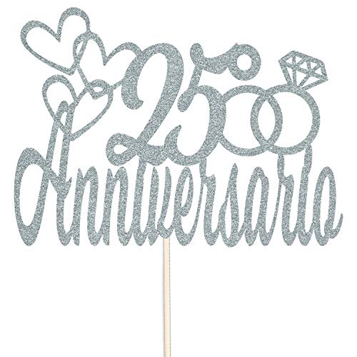 SnappyPartyProps 25 ° Anniversario Luccichio Glitter Topper per Torte Decorazione (Silver)
