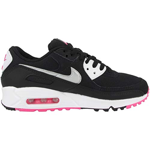Nike Low Air Max 90 - Sneaker da donna, Nero (Black White Pink Blast Metallic Silver), 38 EU