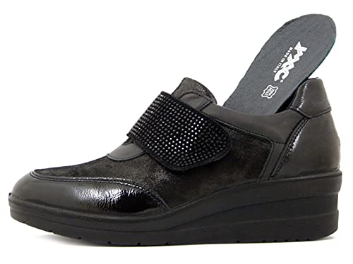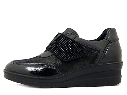 Imac, Sneaker Donna Comfort in Pelle Nero, Chiusura con Strap, Zeppa Media, Sottopiede Estraibile, 806680