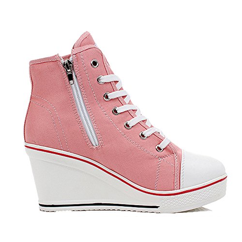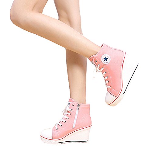 Sneaker Donna Padgene Tela in Alte Zeppa Interna Zip 9 CM Allacciate Scarpe da Moda Sneaker Zeppa Alte donna Scarpe donna Ginnastica Sport Tela Lacci in Canvas, Pink, 37 EU