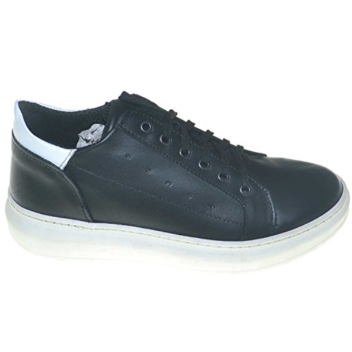 Sneakers Bassa Uomo Bicolore Nero Bianco Made in Italy Vera Pelle Moda Giovanile (44 EU)