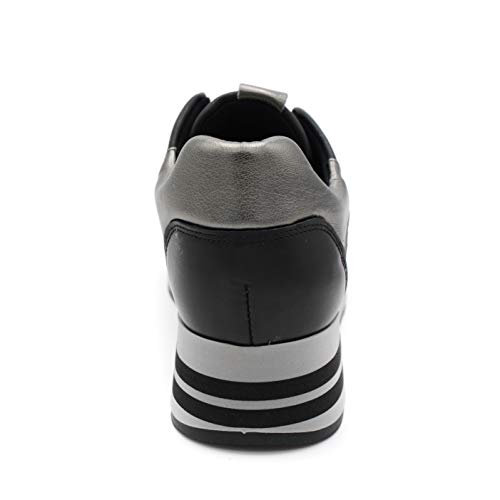FRAU 5524 Sneakers da Donna in Pelle Nero Fondo Bicolore Nero-Grigio Zeppa cm.4,Num.39