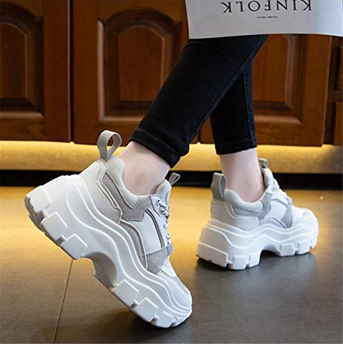 Sneakers da Donna Moda Scarpe Grosse Suola Spessa Piattaforma Stringata in Rete Femminile Scarpe vulcanizzate Calzature Casual Scarpe da Passeggio,Bianca,37