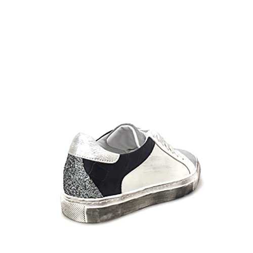 Sneakers Pelle Stampa Cocco e Glitter Argento Vera Pelle Made in Italy (Numeric_36)