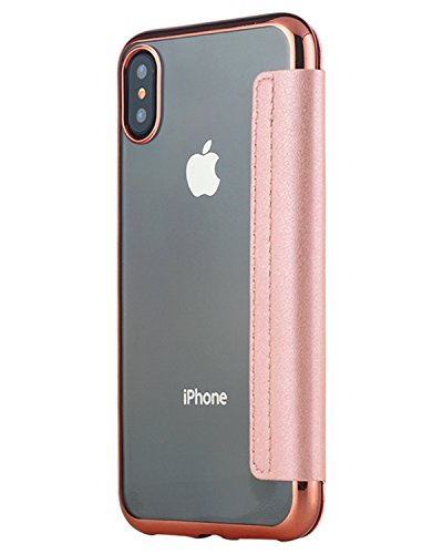 Snewill Custodia iPhone X,Custodia iPhone 10,iPhone X Case Slim PU Leather Folio Flip Case with Card Slot & Clear Soft TPU Back Cover for Apple iPhone X - Rose Gold