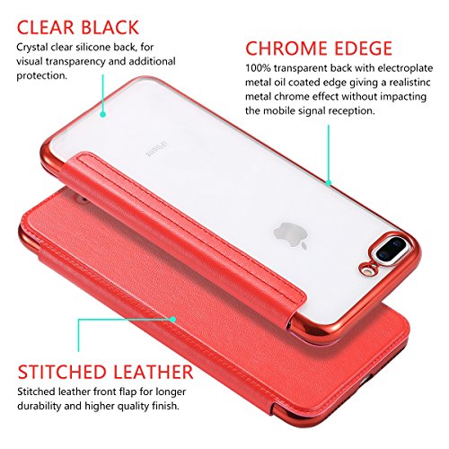 Snewill Custodia iPhone 8 Plus,Custodia iPhone 7 Plus, [Ultra Slim] PU Leather Folio Flip Wallet Case with Card Slot Clear Soft TPU Back Cover for iPhone 8 Plus/iPhone 7 Plus 5.5"-Red
