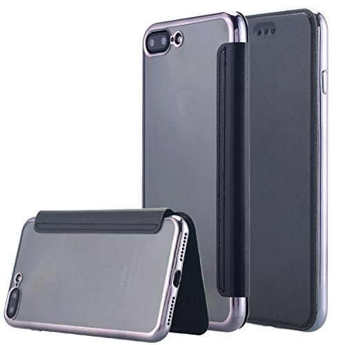 Snewill Custodia iPhone 8 Plus,Custodia iPhone 7 Plus, [Ultra Slim] PU Leather Folio Flip Wallet Case with Card Slot Clear Soft TPU Back Cover for iPhone 8 Plus/iPhone 7 Plus 5.5"-Black