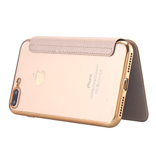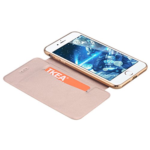 Snewill Custodia iPhone 8 Plus,Custodia iPhone 7 Plus, [Ultra Slim] PU Leather Folio Flip Wallet Case with Card Slot Clear Soft TPU Back Cover for iPhone 8 Plus/iPhone 7 Plus 5.5"-Gold