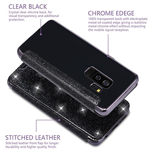 Snewill Galaxy S9 Custodia, Galaxy S9 Case, S9 Case, Glitter Shiny Bling Slim PU Leather Folio Flip Custodia con Card Slot & Clear Soft TPU Back Cover per Samsung Galaxy S9