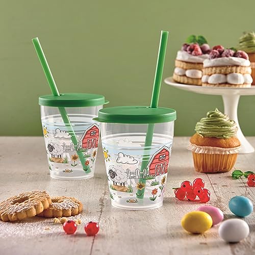 Snips Set 4 Bicchieri Con Cannuccia | 0,385 LT | Bicchiere Con Cannuccia | Bicchiere Bambini | Decoro Farm | Made in Italy | 0% BPA