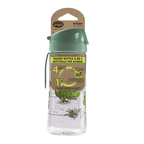 Snips Borraccia Bambino | Decoro Dinosauro | Bottiglia Bambino |Tritan Renew | 0,50 LT | 7x7x20 | Made in Italy | 0% BPA