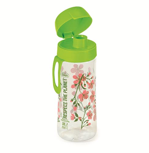 Snips Rosa Bottiglia in Tritan 0,50 LT-Trasparente con Decoro Fiore, 7.1 cm