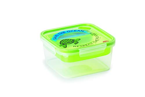 Snips 1,4 LT Lock Lunchbox Ermetico Quadrato, Trasparente con Decoro Tartaruga