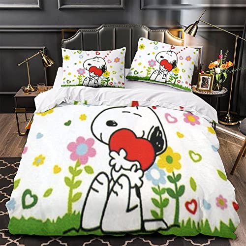 Snoopy Copripiumino in Bedding Set 3 Pezzi Anime Characters Copripiumino Morbida Traspirante Accogliente Microfibra Copripiumino 3D Bambini Adolescenti Adulti Letto matrimoniale (200x200 cm)