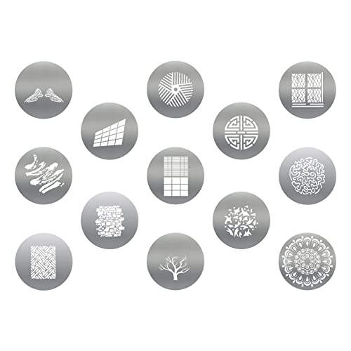 GOBO Set per snoot ottico lega di Alluminio proiettore Bowens Mount 13 schede grafiche Gobos,piastre metalliche con motivi cavi,accessori fotografici per Godox Soonpho AMBITFUL(Group Ⅳ)