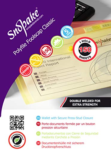 Snopake 10087X - busta portadocumenti, cartellina con chiusura a bottone e spazio per adesivo, stile Classico, colori assortiti (confezione da 5)