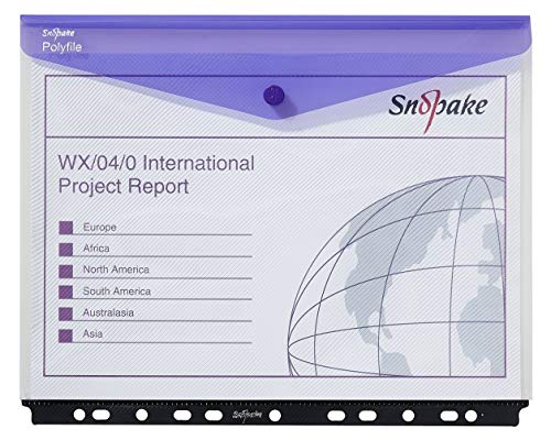 Snopake 15694 - Custodie trasparenti per raccoglitori ad anelli Polyfile, chiusura con bottone automatico, formato oblungo, colori assortiti, 5 pz.